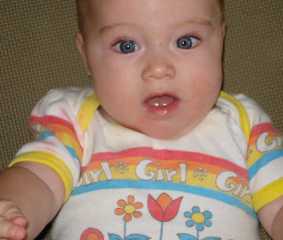 Ever since Annie was first born, my sister started calling her "girl!" I'm not really sure why, maybe b/c Max was the boy and Annie was the girl...even though we don't call Max boy...but anyway...The nickname has stuck. My mom brought Annie a ton of my old baby clothes and we found this shirt in the mix...I thought it was perfect for her!