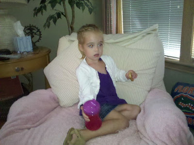 Annie's painted nails that of course she has to do "all by herself!" (I have these visions of us sitting together and me painting her nails all pretty...haha...not my daughter! She wants in on the action!